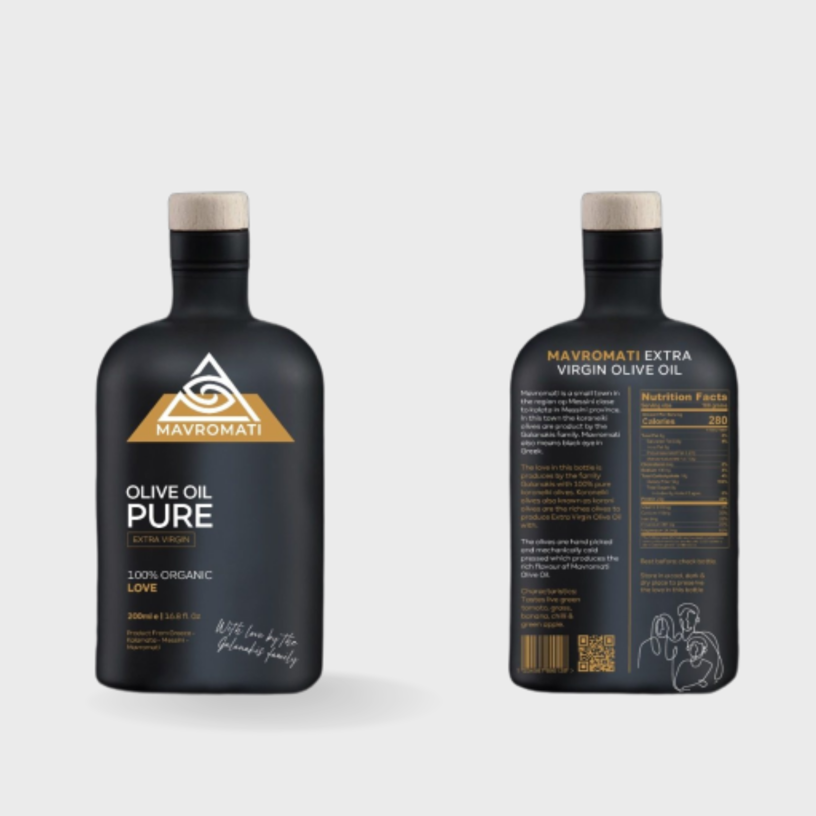 De olijfoliën van Mavromati worden nog steeds op traditionele wijze met de hand geplukt door de familie Galanakis. Dit geldt ook voor alle andere producten zoals de druiven die in de wijnen worden verwerkt en alle andere producten die verkocht worden door Mavromati. De producten van Mavromati hebben zowel een moderne smaak als een moderne verpakking. Eeuwenoude, maar dan super modern.